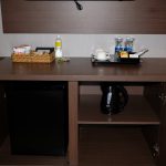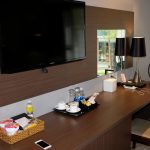 Cảm giác ấm cúng bởi ánh đèn vàng, màu gỗ của nội thất, màu rèm và thảm lót sàn cùng tone, tất cả kết hợp khiến mình cảm thấy thích ngay căn phòng này ngay từ những giây đầu tiên. Mình đặt phòng Superior Double, ở tầng 3, một mặt tường toàn bộ là kính trong suốt nên có được không gian mở tối đa cho căn phòng. Có lẽ do các dãy phòng khá rộng nên có một điều là mình chưa thể nhớ cách đi đến phòng mình bằng thang máy sau khi băng qua vài dãy hành lang.